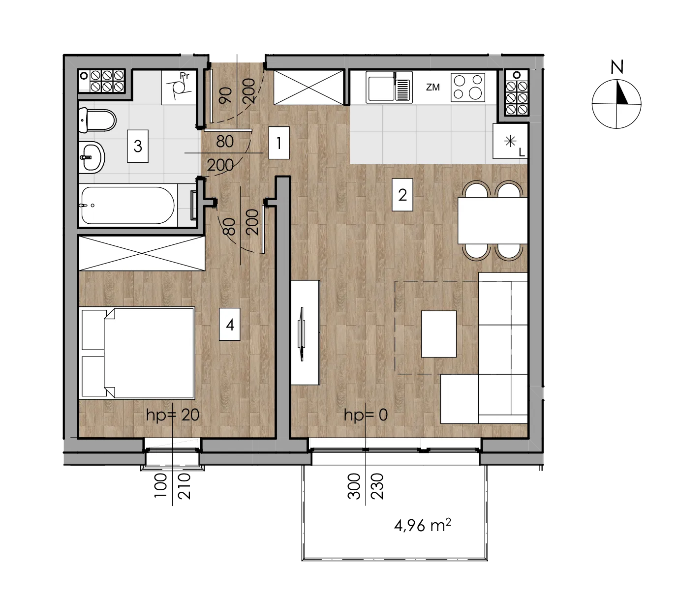 - Balkon 4.96 m²
