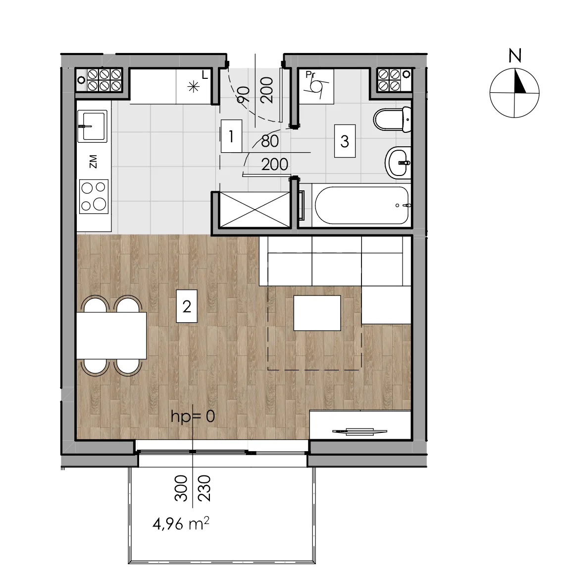 - Balkon 4.96 m²